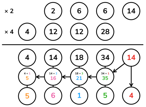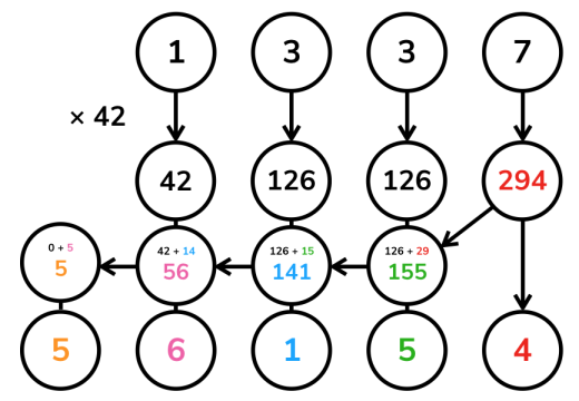 也就是从最低位开始,将两个加数对应位置上的数码相加,并判断是否达到或超过 \(10\) 。如果达到,那么处理进位:将更高一位的结果上增加 \(1\) ,当前位的结果减少 \(10\) 。