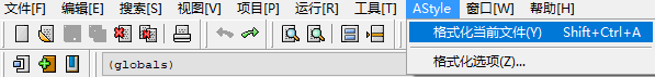 点击 Astyle-> 格式化当前文件 或 按 Ctrl+Shift+A 进行代码格式化。