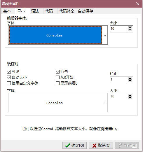 点击工具 -> 编辑器选项,然后选择 "显示" 选项卡。